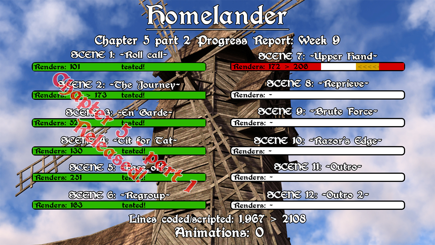 I'm still on scene 7, though thankfully, I'm finishing it at a steady pace. In fact, I'm nearly finished with the "outro" section of the scene, and I'll have to return to finish the denser middle portion of the scene before the week is out. I'll be honest, I can't wait to finish this damn scene! I'm more than happy with how everything is turning out so far, but holy moly, is it a GRIND!