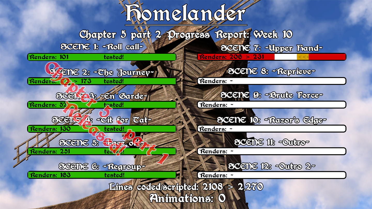 I was expecting to finish the end section of S7 this week but forgot about plans and didn't have as much time as expected. The section turned out to be a little longer than expected as well, after properly scripting it out, but I'm extremely happy with how the scene is turning out. Still, there are only a handful of renders left before I can move back to the middle section, or on to S8 to continue my break from the grind of S7.