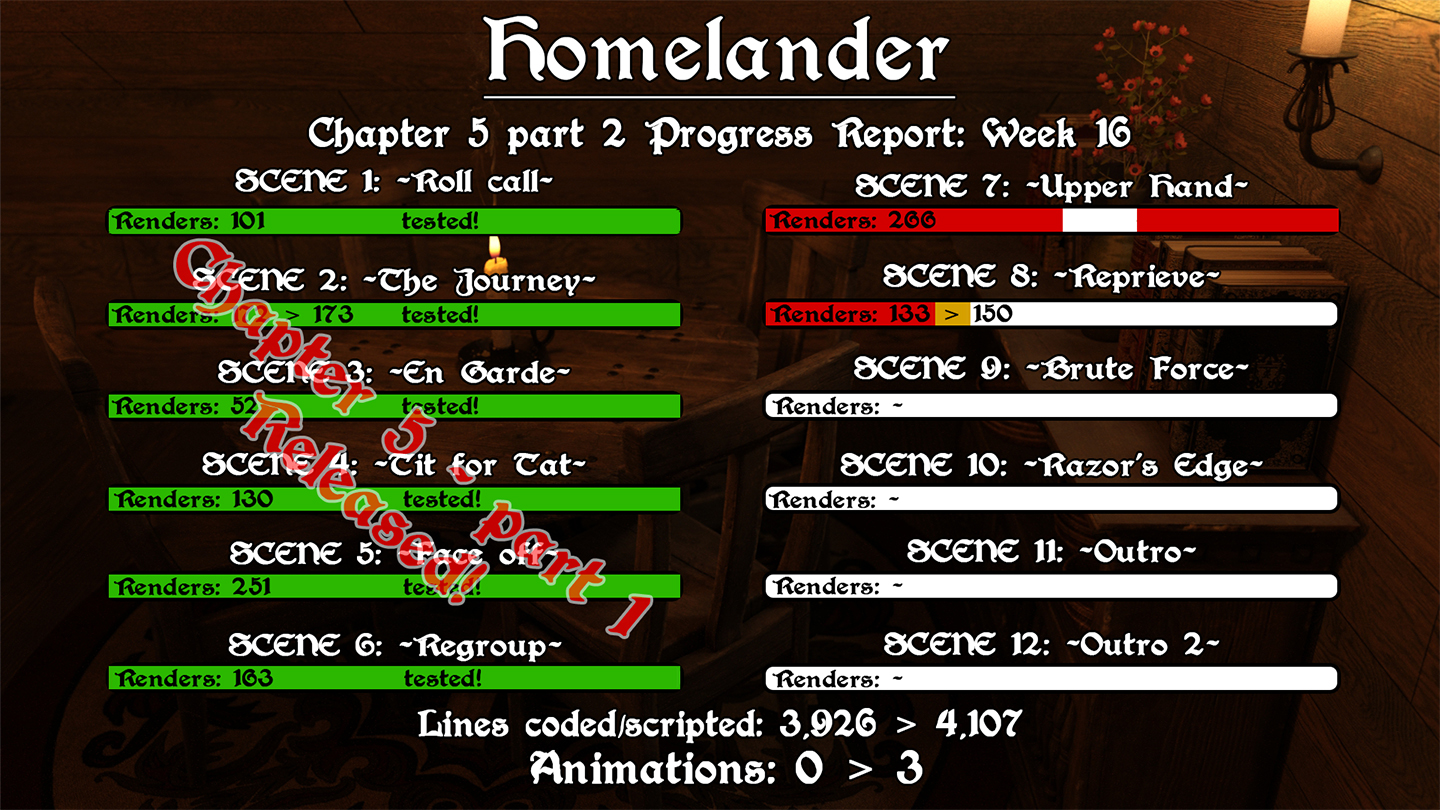I'm happy to report that, on top of the renders and scripting, I was able to finish 3 animations this past week, and I have one more nearly ready to go. I have a few more lined up, but I'm still trying to decide just how much content I want to attempt to cram into this update. Most would say the more the merrier, but I'm still trying to get this update out in a fraction of the time from the previous, and it's already starting to get way denser than I originally anticipated. Most don't mind having more content when all is said and done, but 'slow and steady' isn't exactly the most sustainable strategy at the moment.