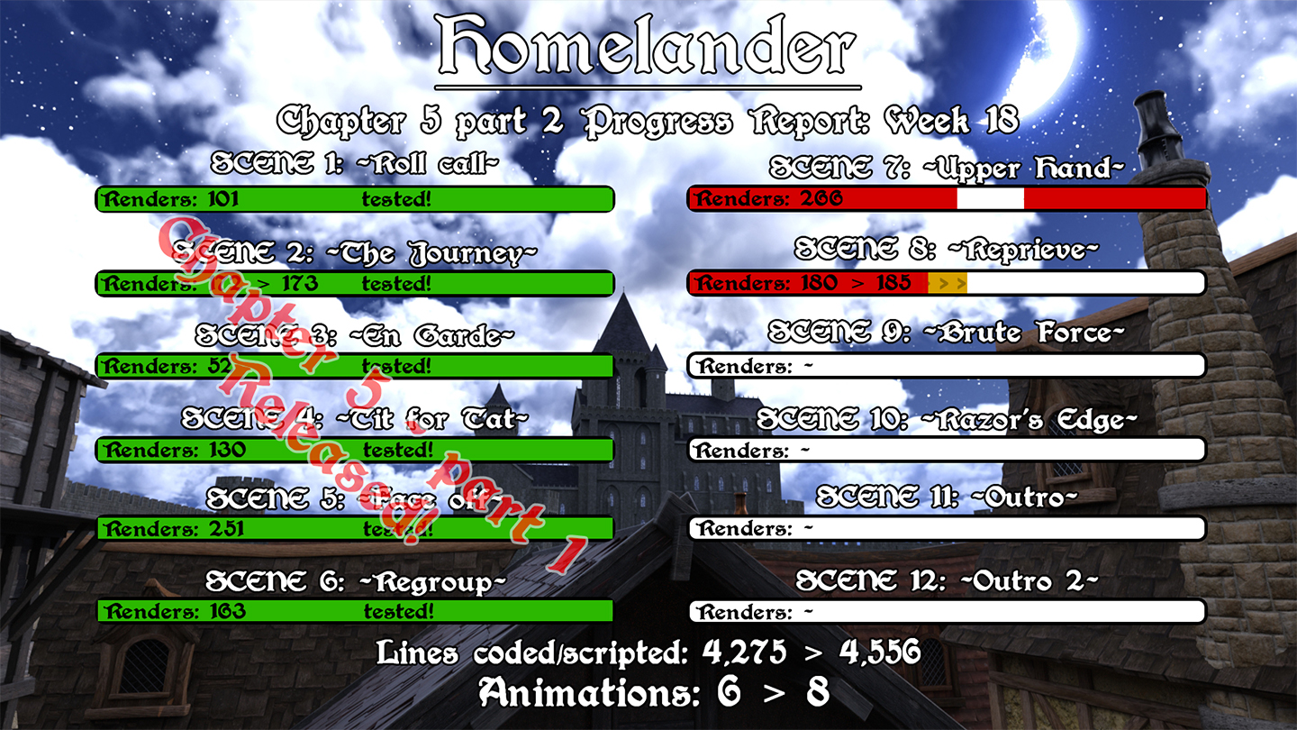 I spent a lot of that rendering downtime catching up on sections of the script that I've rushed through recently, and rewrote all my notes with actual script and code. I haven't caught all the way up yet, but I'm not far off. Only one more good scripting day should catch me all the way up and then some.